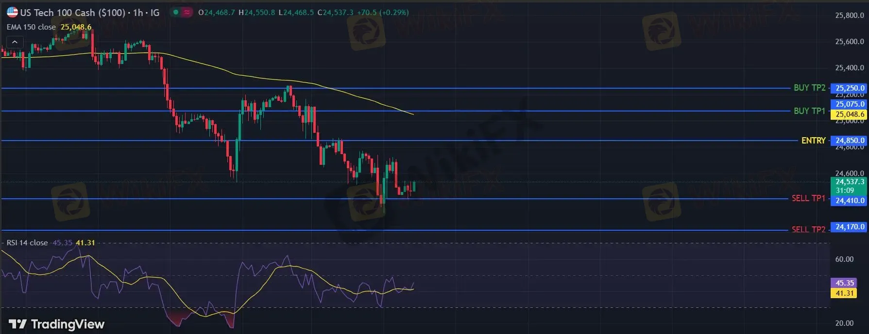 在 24850 之下,看跌,目标价位为 24410 ,然后为 24170 。