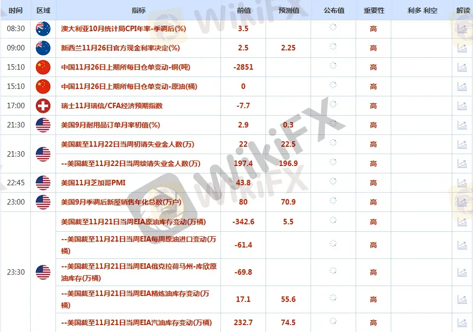 日元走势成为市场焦点,美元兑日元下跌0.6%。荷兰国际集团外汇分析师FrancescoPesole指出,感恩节期间流动性偏低可能为日本央行干预汇市创造有利条件。自10月以来,日元兑美元已贬值近10日元,使得干预风险持续升温。
