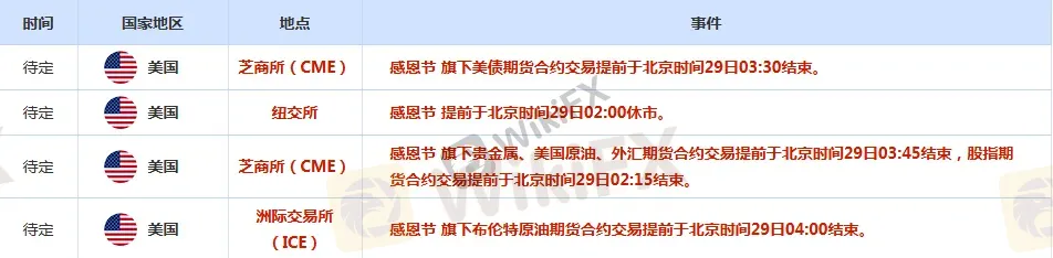 美国股市收盘:因感恩节假期,美股、美债休市。