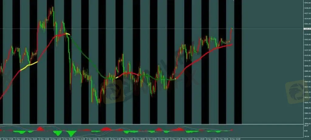 三色线维持红色,H1 标准多单已于 4144 入场并盈利 150 点离场。日内可结合 M5 基础模型进行短线操作。