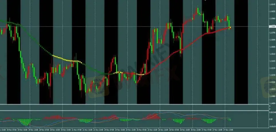 H1 趋势线由红转黄,H1 多单已于 1.1517 入场并达成盈利。日内可参考 M5 综合模型进行交易。