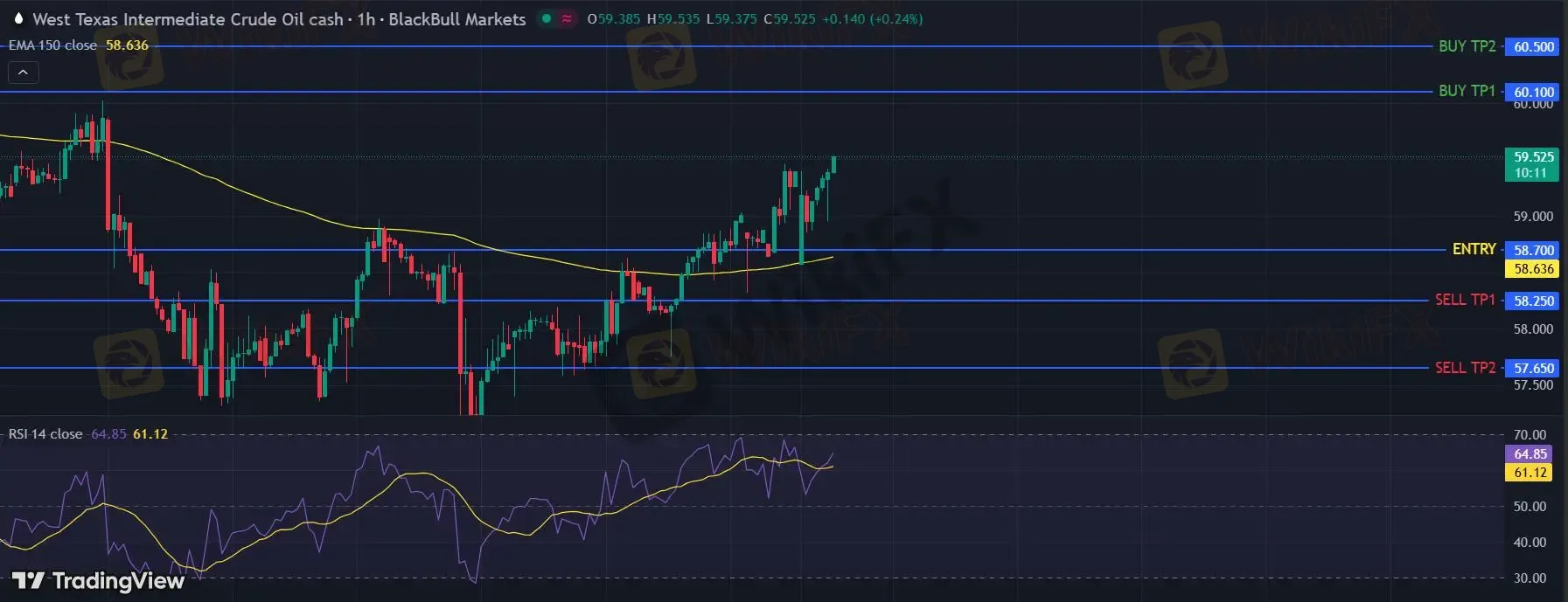 在 58.70 之上,看涨,目标价位为 60.10 ,然后为 60.50 。