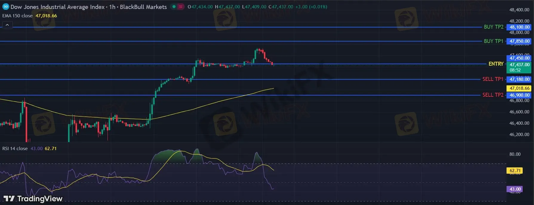 在 47450 下,看空,目标价位定在 47180 ,然后为 46900。