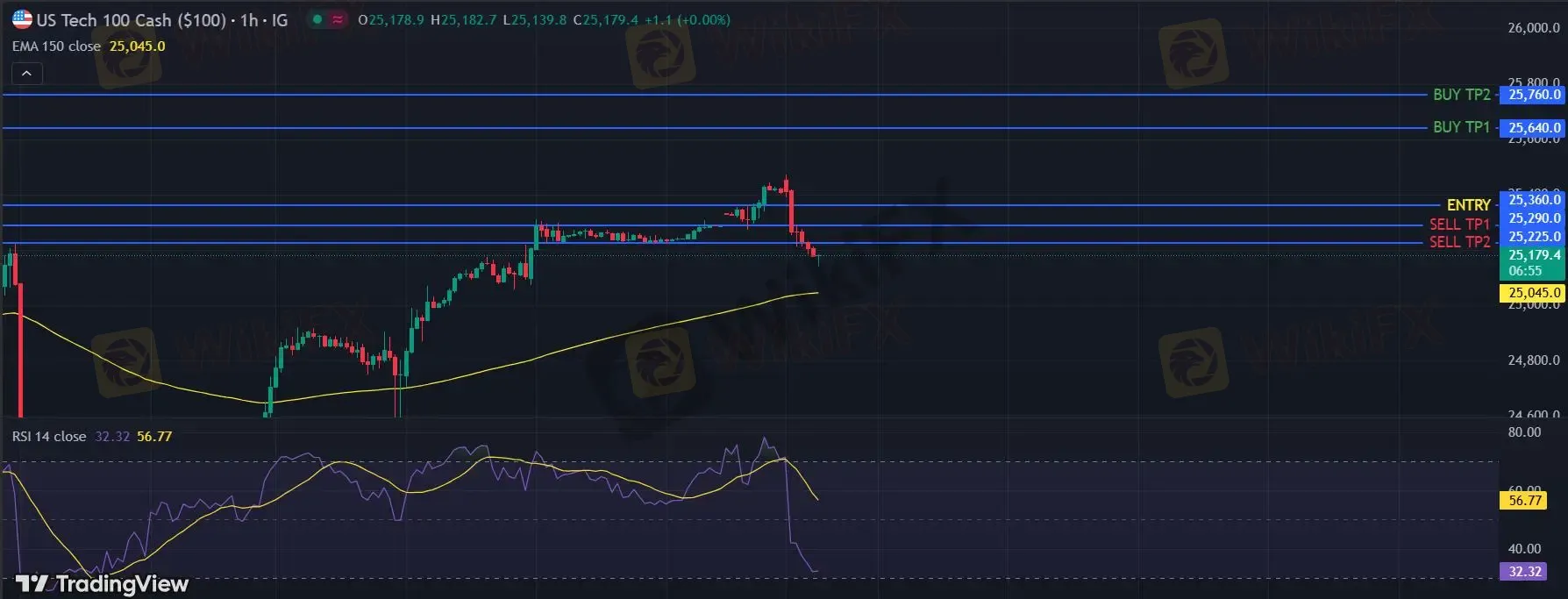 在 25360 下,看空,目标价位定在 25290 ,然后为 25225。