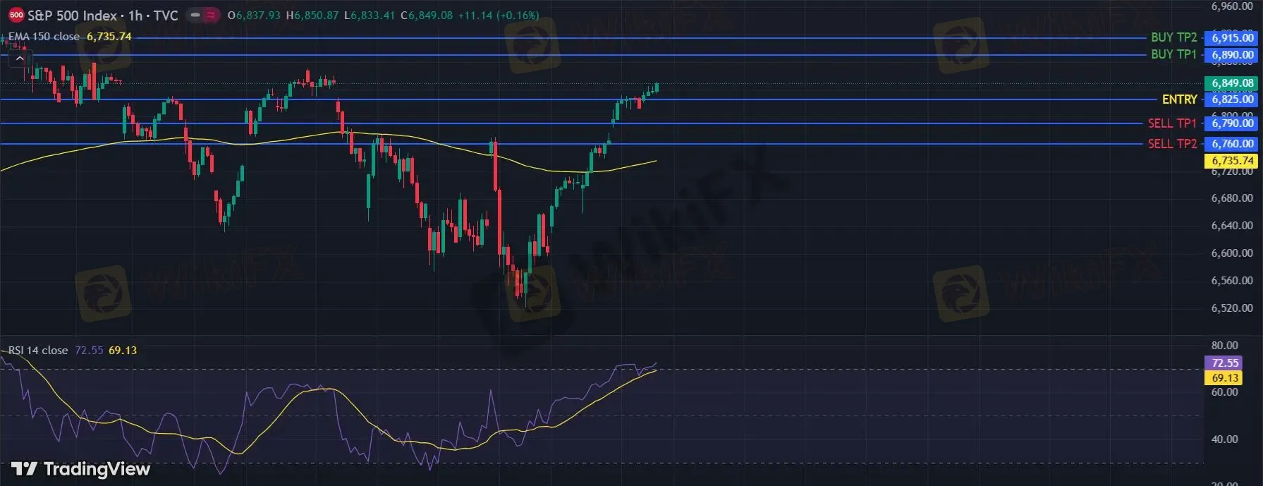 在 6825 之上,看涨,目标价位为 6890 ,然后为 6915 。
