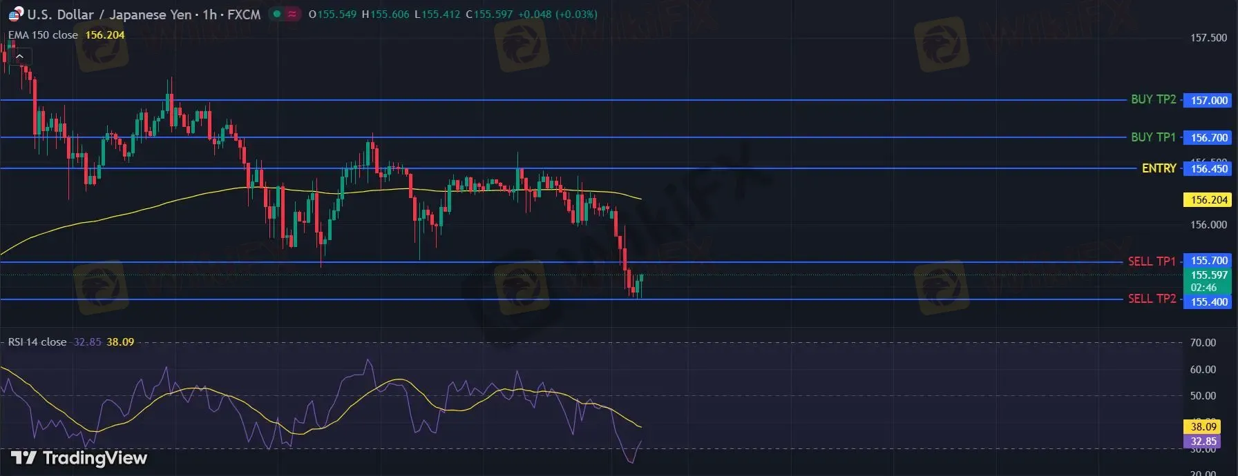 在 156.45 之下,看跌,目标价位为 155.70 ,然后为 155.45 。
