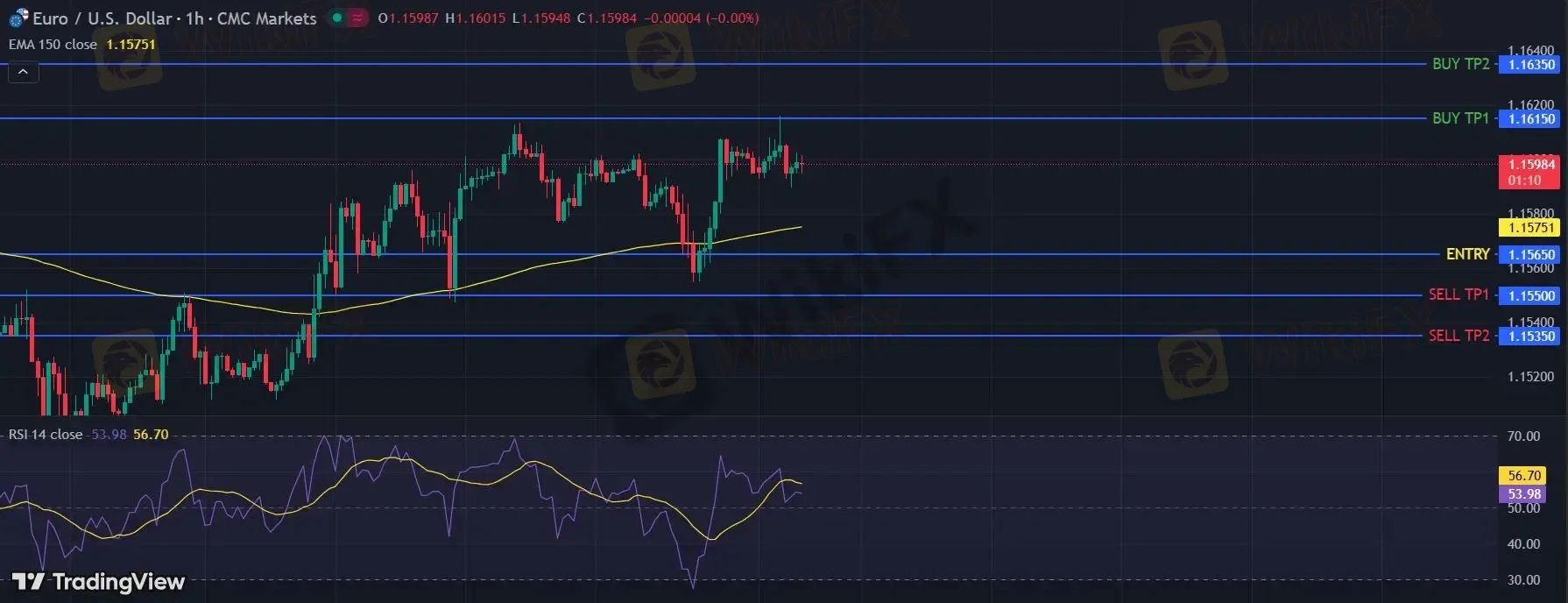 在 1.1565 之上,看涨,目标价位为 1.1615 ,然后为 1.1635 。
