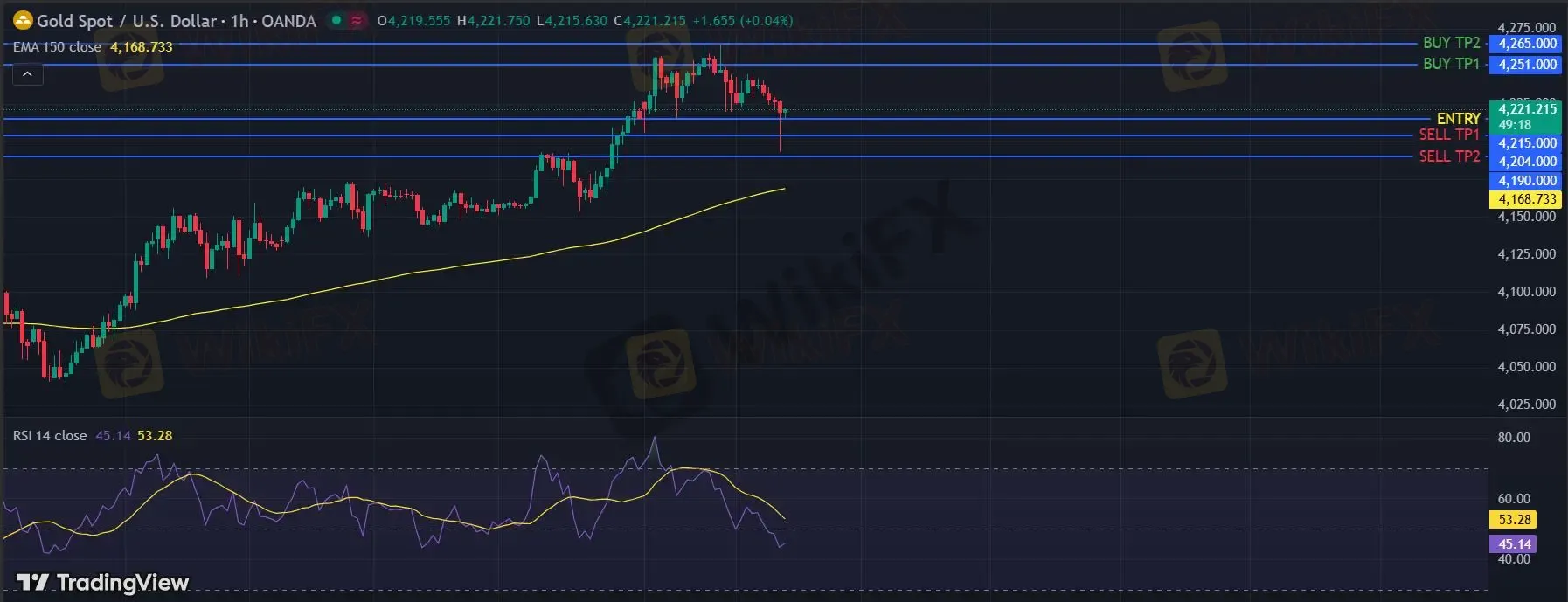 在 4215 之上,看涨,目标价位为 4251 ,然后为 4265 。