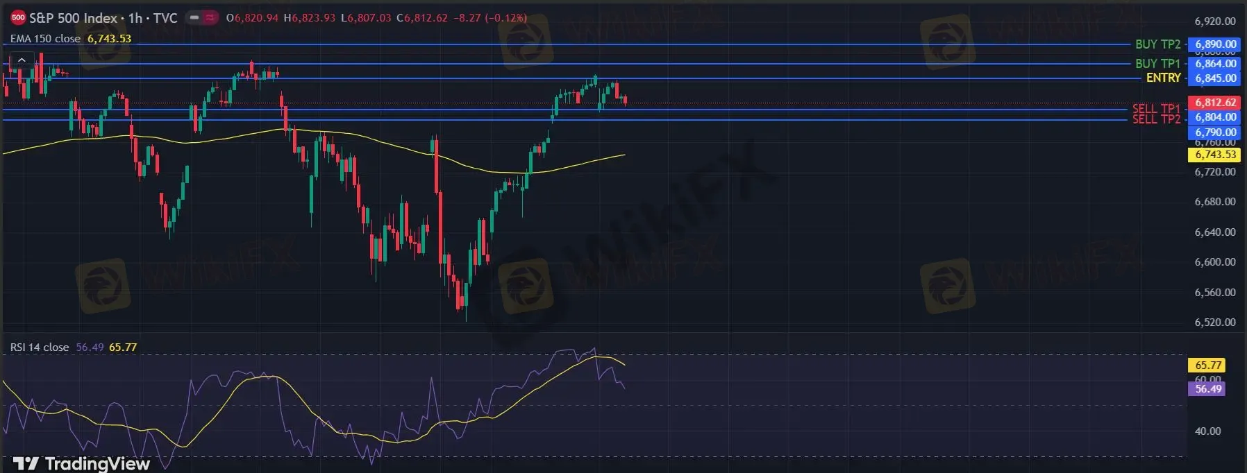 在 6845 之下,看跌,目标价位为 6804 ,然后为 6790 。