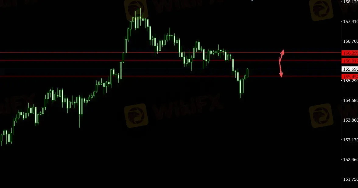 美元指数受支撑,日元反弹,关注支撑位155.450,4小时看多至156.300;关注压力位156.020,4小时看空至155.160。