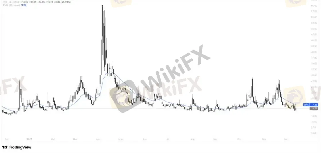 VIX 日线显示波动率正在温和抬升,指数回到 15.7 附近并仍低于 20 日均线(约 17.3),说明市场风险偏好降温但尚未进入恐慌区间;当前水平更像是对前期高位风险资产回调的正常对冲需求,而非系统性风险释放,若后续 VIX 无法有效站上 17–18 区间并持续放量,上行波动大概率仍受限,市场更偏向“震荡消化而非趋势性下跌”。