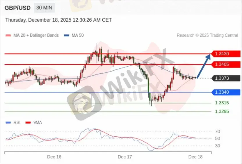 交易策略: 在 1.3340 之上,看涨,目标价位为 1.3405 ,然后为 1.3430。