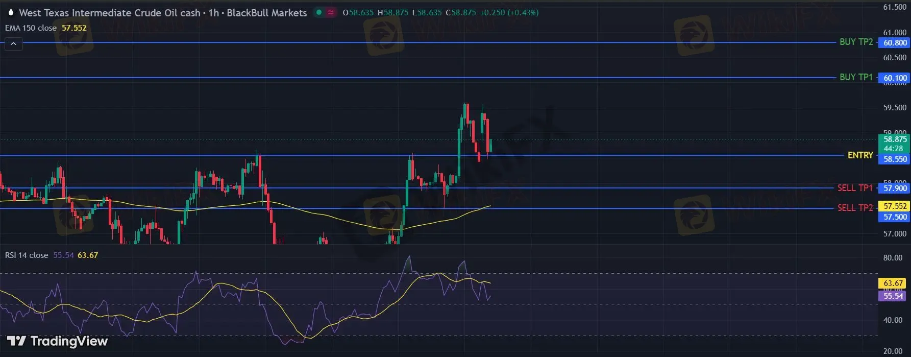 在 58.55 下,看空,目标价位定在 57.90 ,然后为 57.50。
