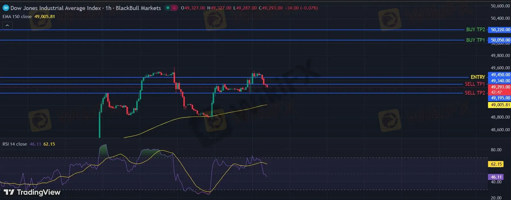 在 49450 下,看空,目标价位定在 49340 ,然后为 49195。