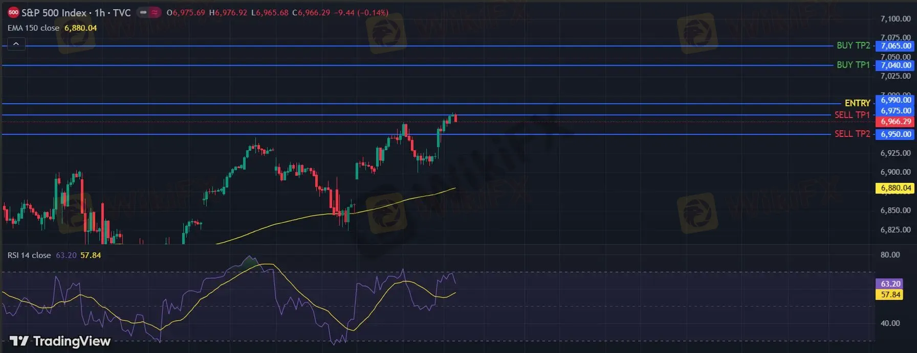 美国标普500指数期货 (H6) 当日内: 超短线(当日内)支撑位在6990附近。