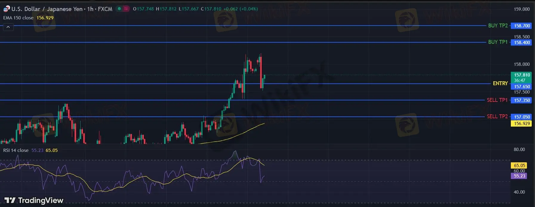 在 157.65 下,看空,目标价位定在 157.35 ,然后为 157.05。