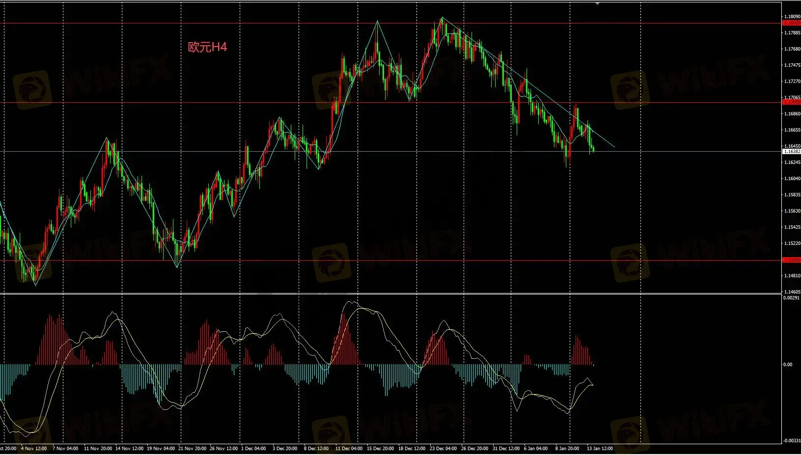H4图表价格只要汇价维持在1.17关口后持续看空,目标1.15。