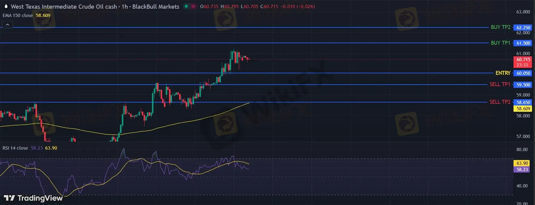 在 60.05 下,看空,目标价位定在 59.50 ,然后为 58.65。