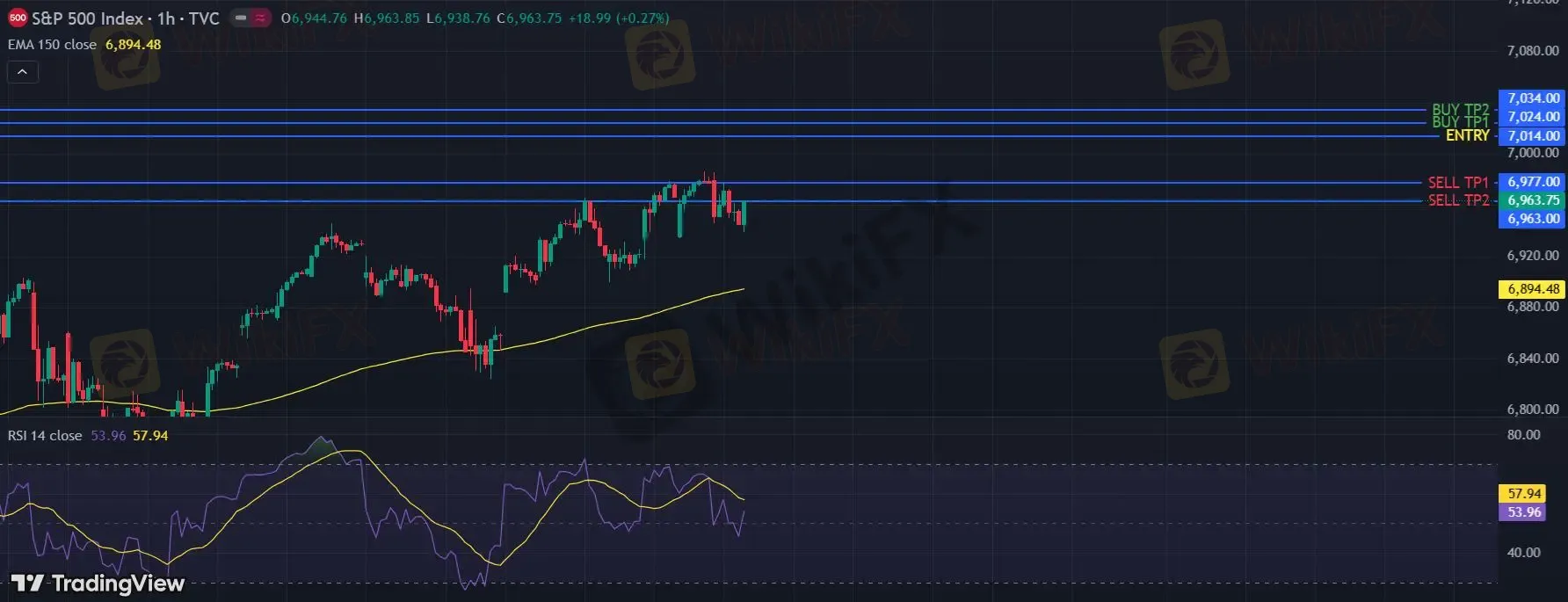 在 7014 之下,看跌,目标价位为 6977 ,然后为 6963 。