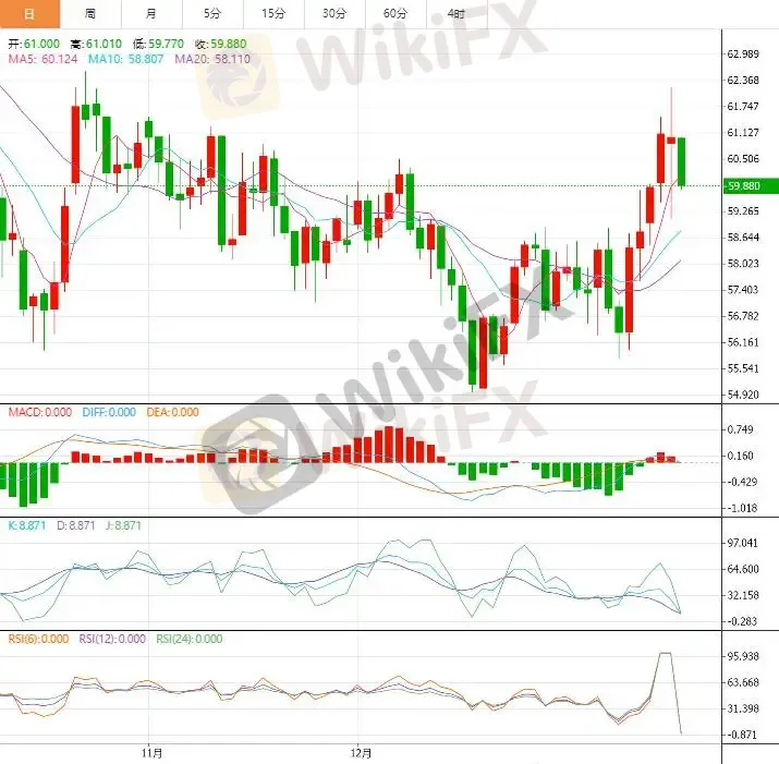 从技术分析角度看,油价此前已连续五个交易日上涨,推动价格从持续约三个月的波动区间(55 - 62 美元)底部攀升至区间顶部。当前价位已触及关键分水岭:若油价能有效突破 62 美元附近阻力(该区域包含 200 日均线 62.28 美元),则可能打开上行空间,下一目标或指向 66 美元附近的半年多高点,该位置也接近自 2023 年下半年高点形成的长期下降趋势线阻力位。下行方面,若伊朗局势出现缓和迹象且该国社会秩序趋于稳定,当前原油价格中的地缘政治风险溢价将会快速消退。在这种情况下,油价很可能反转回落至 60 美元心理关口下方。