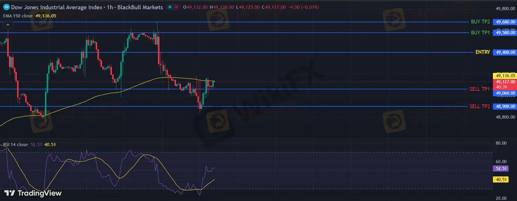 在 49400 之下,看跌,目标价位为 49060 ,然后为 48900 。