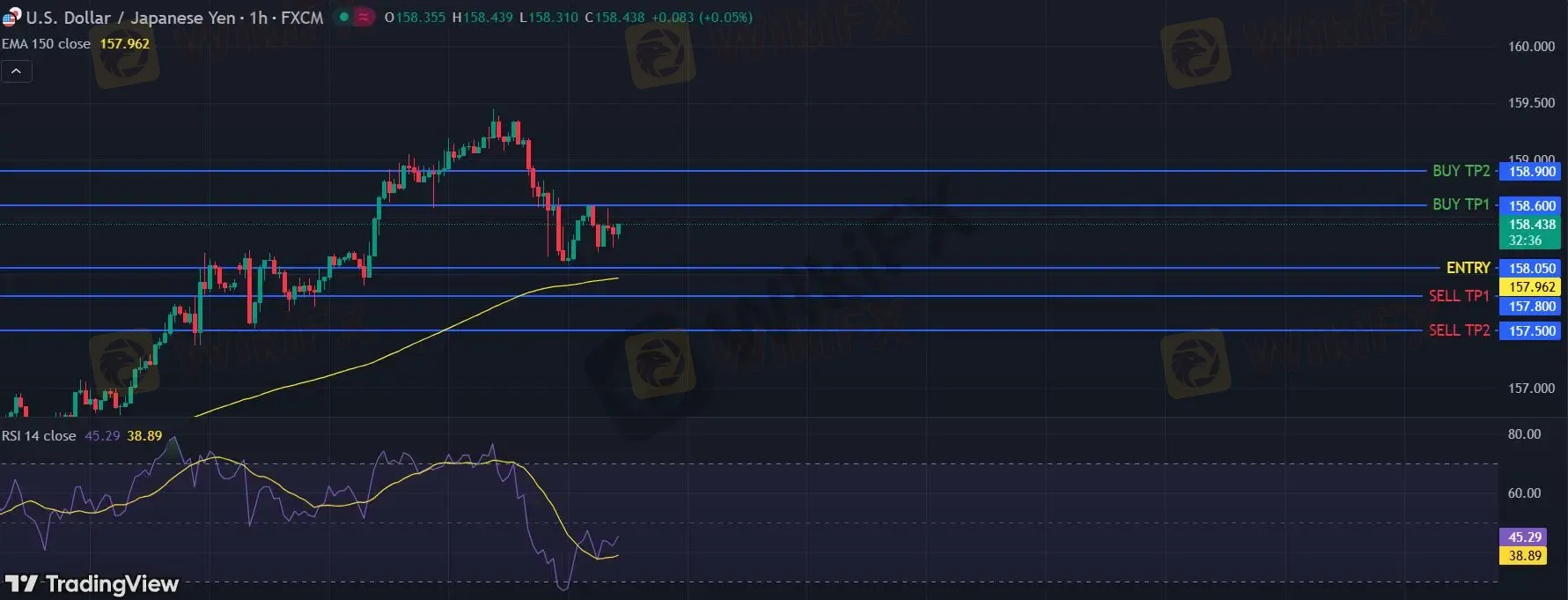 美元/日元 当日内: 超短线(当日内)支撑位在158.05附近。