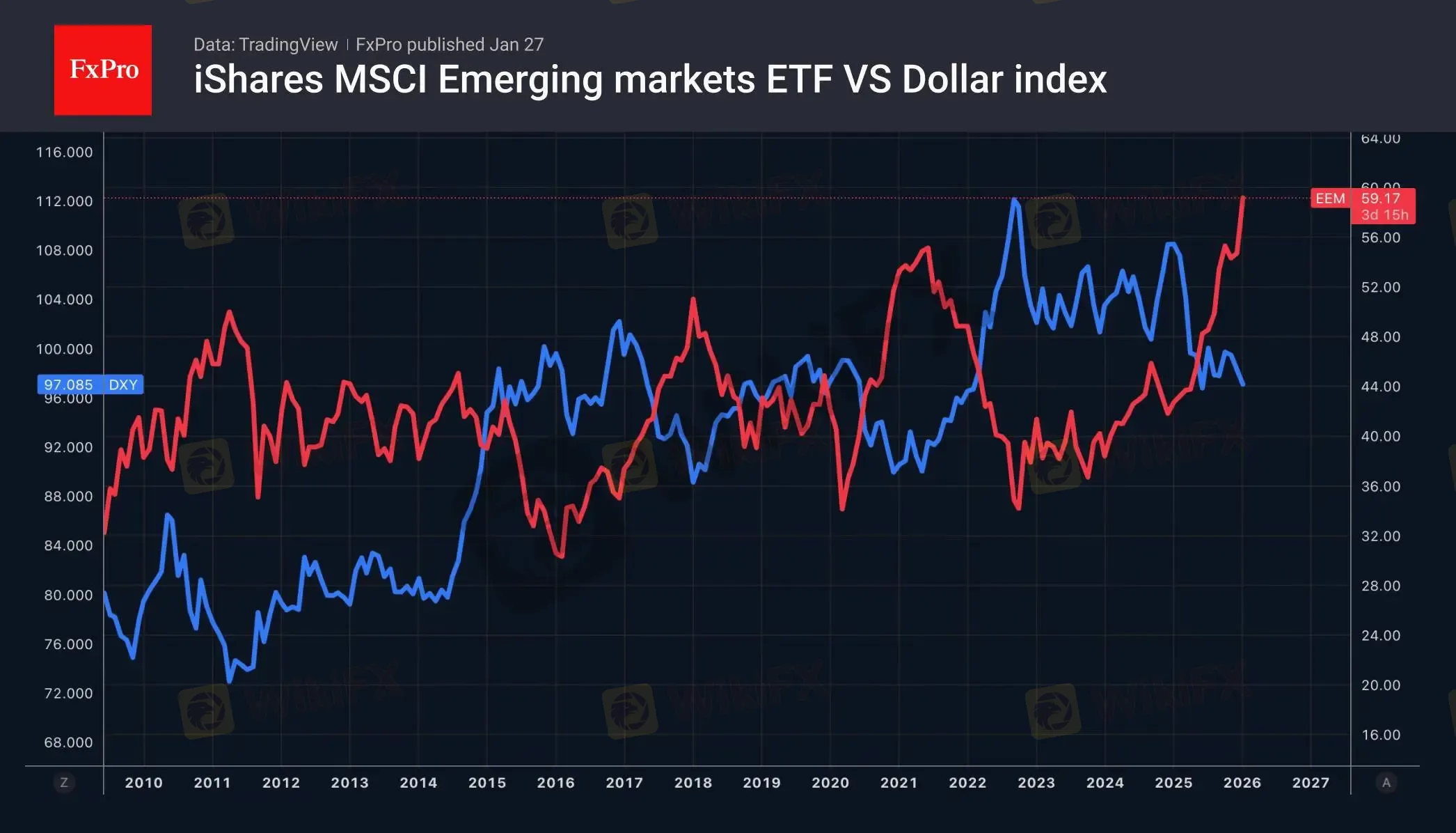 受投资组合从美国资产撤离的影响,美元承压。截至1月21日那个周末,聚焦美国资产的交易型开放式指数基金(ETF)资金流出规模达170亿美元。尽管欧洲和日本市场也有资金流入,但这部分流入规模远不及新兴市场。自1月初以来,专注新兴市场资产的专项ETF已吸引1340亿美元资金,创下2012年以来的最佳开局。