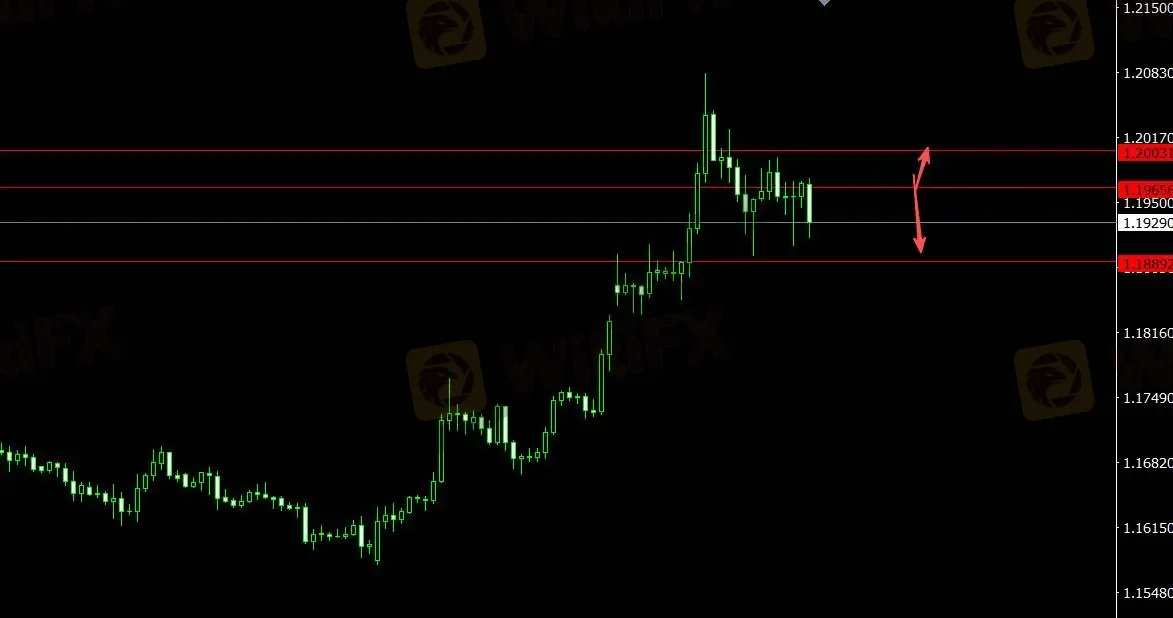 美元指数受支撑,欧元承压。关注支撑位1.18890,4小时看多至1.20030;关注压力位1.19660,4小时看空至1.18590。