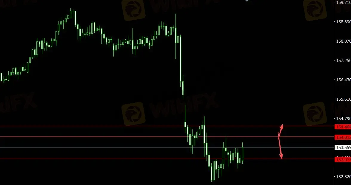 美元指数受支撑,日元反弹,关注支撑位153.080,4小时看多至154.460;关注压力位154.010,4小时看空至152.600。