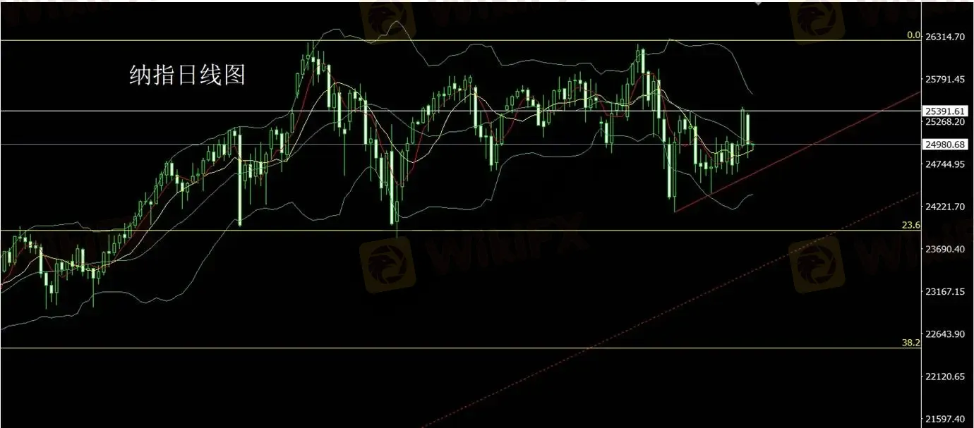 纳指昨日收出带长下影的大阴线,形成日线阴包阳结构。