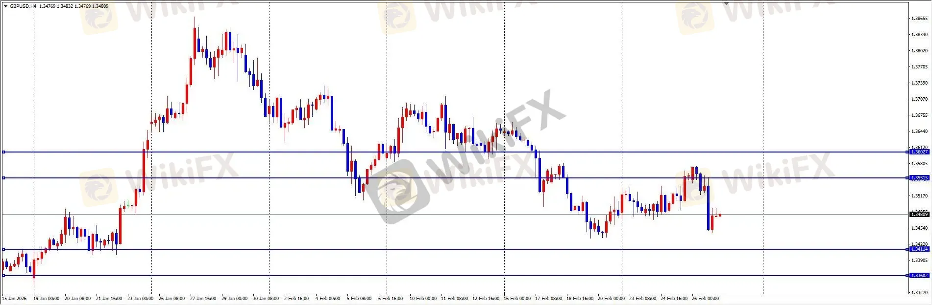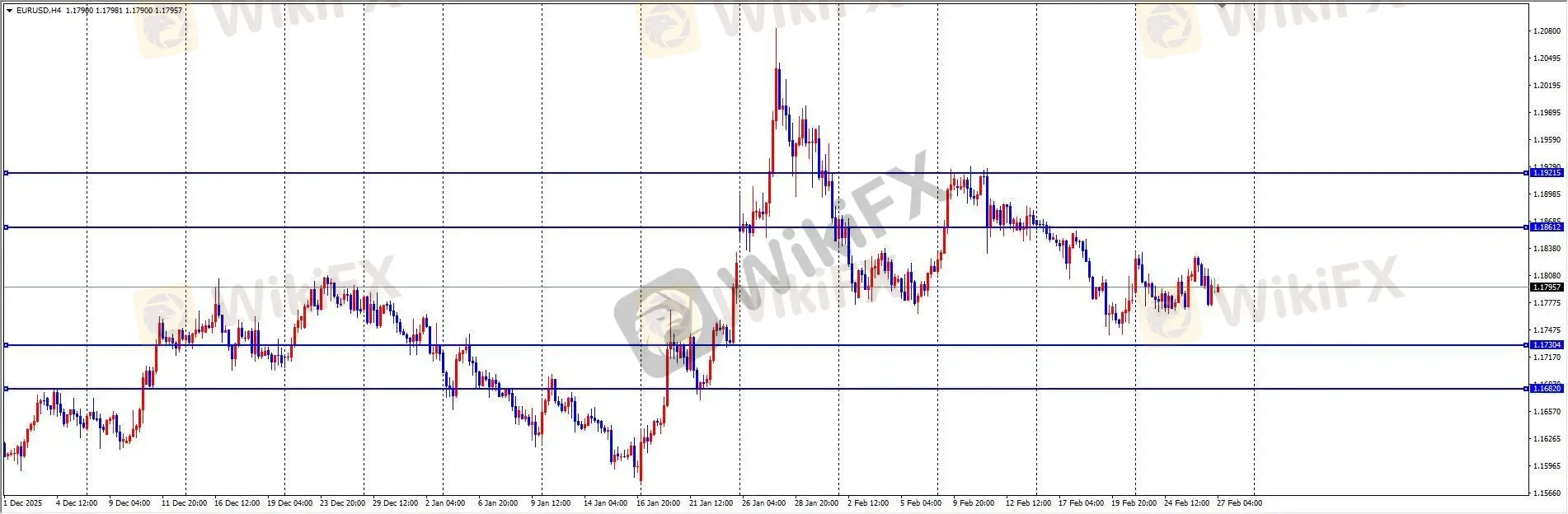昨日欧美价格先涨后跌,盘中最高触及 1.1829 后回落至 1.1774 附近,最终日线收出带上下影线的小阴线。数据面上,欧元区 2 月经济景气指数低于预期,欧央行行长拉加德重申未来政策将依赖数据决定。美国初请失业金人数增幅低于预期,显示劳动力市场依然稳健。多空因素交织下,欧美延续区间震荡格局。