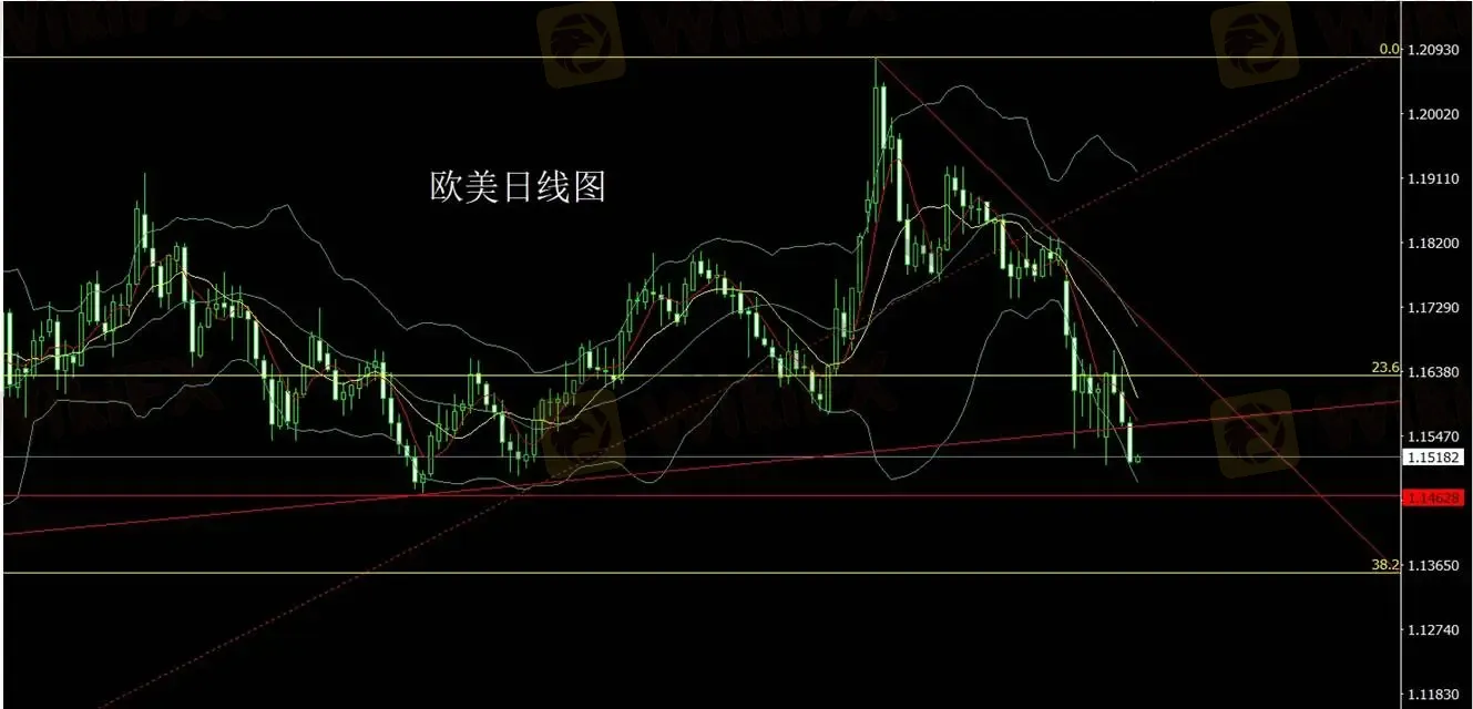欧元昨日小幅上探后快速回落,日线收出实体较大的阴线形态,显示短线多头动能有所减弱。当前汇价在前期支撑区域附近整理,市场短期走势偏向震荡调整。