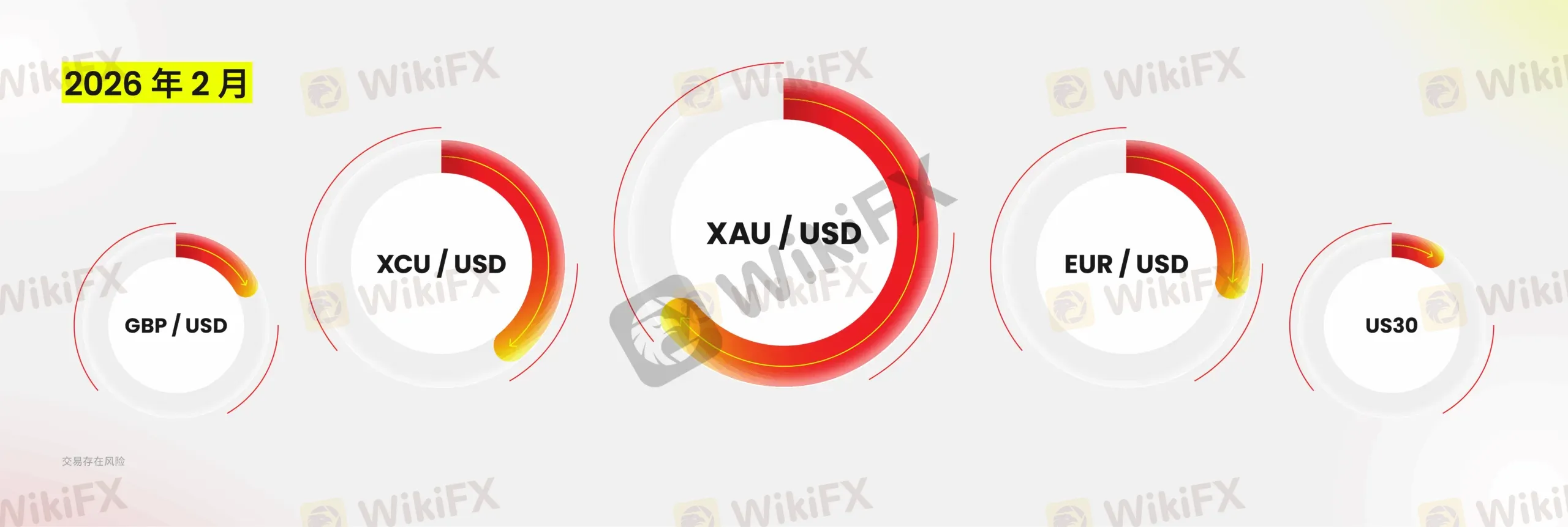 此外,XBRUSD(布伦特原油)交易量实现 897.38% 的爆发式增长,成为当月增幅最大的品种。这一表现主要受中东地缘冲突升级、OPEC+ 延长减产协议落地及全球能源运输成本飙升等因素驱动,叠加 1 月低基数效应,进一步放大了增幅表现。