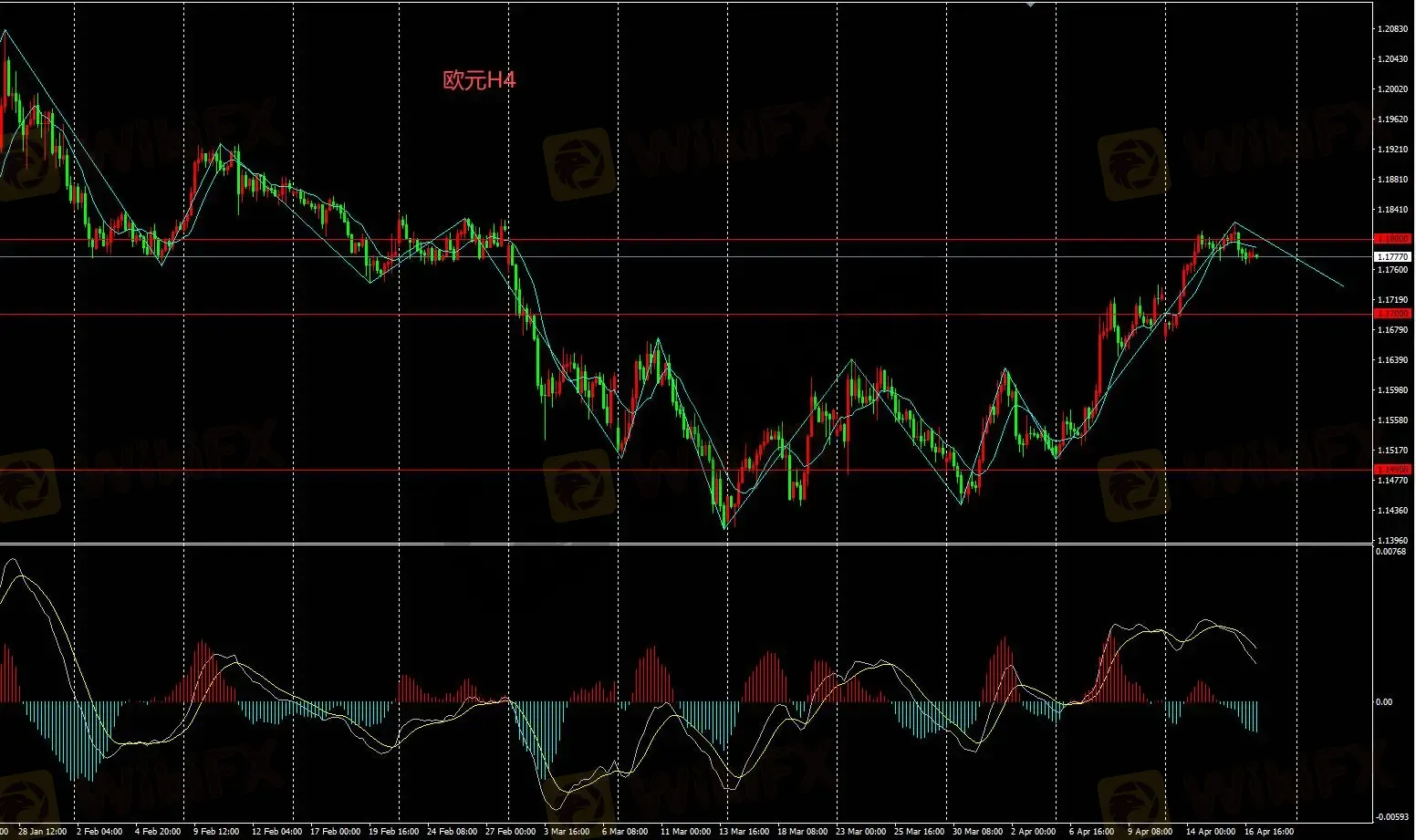 H4图表汇价,采取逢低买入操作,下方支撑1.17,只要汇价维持在该支撑上方持续看多。