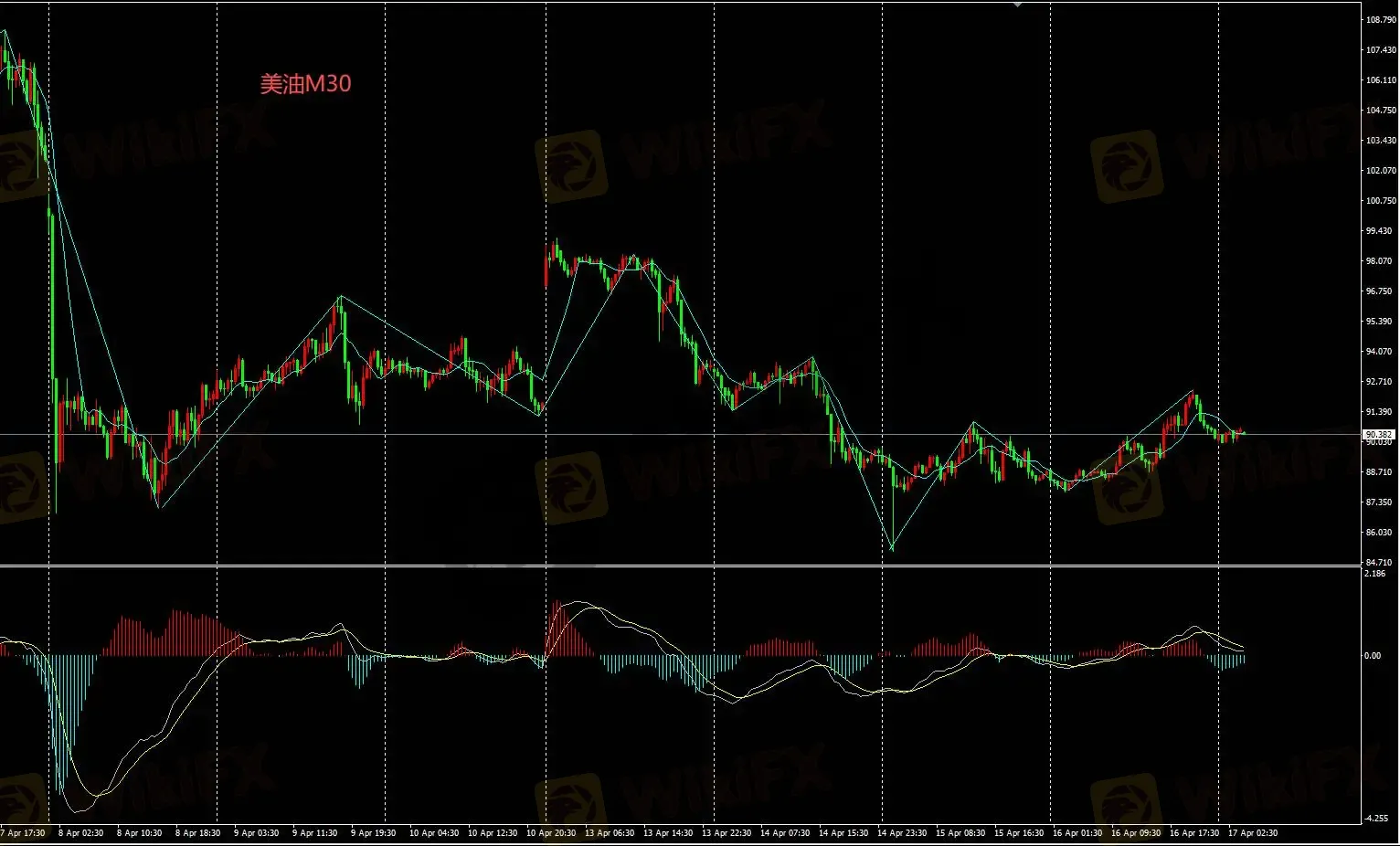 美油M30图表多头策略暂时回避,目前处于下跌结构的下跌段,日内无多头入场机会。