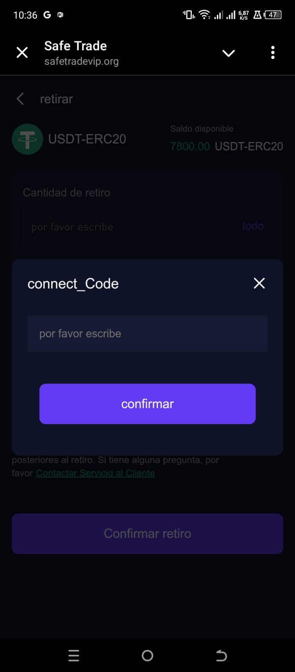 El 21 de octubre hice mi depósito, me dijeron que me darían el código de retiro, pero ahora me salen con otra tarea con un monto aún mayor que la anterior. Y no me dejan retirar mi dinero si primero hacer el depósito para obtener mi saldo. La plataforma se llama Safe trade vip