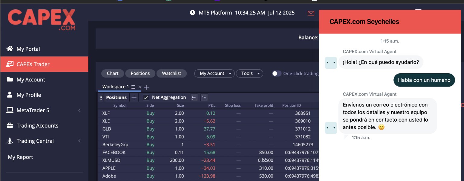 Trato de retirar dinero de mi cuenta ya que las comisiones empezaban a mermar y hace dos meses que cambiaron la configuración de su visualización de el trader las comisiones fueron muy agresivas, opto por contactar a mi broker y el senor Jaison Sanchez constantemente pone una traba para no retirar el dinero de la cuenta y diciendo que tengo que completar un bono que tengo casi completado al 75 % y tengo que invertir en posiciones con mas volumen lo cual le pregunto si puedo retirar mi capital entero y comenta que solo terminando el bonus me regresarian mi dinero, me uno a los que aun han tenido los mismo problemas y han pasado en el mismo momento en el cual han tenido un problema al retirar sus inversiones, buscando una salida a este tema y nos liberen nuestras inversiones.