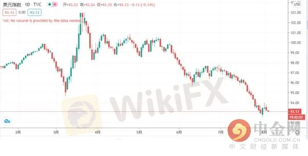 摘要:週三(8月5日)亞洲時段,美元指數震盪下跌,現交投於93.16一線。