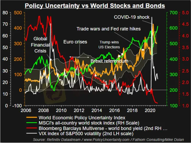 摩根大通使用全球M2貨幣供應量和經濟政策不確定性指數(Economic Policy Uncertainty Index)作為指標,顯示到7月,全球央行貨幣供應異乎尋常的激增量已經幾乎被現金囤積“抹去了”。