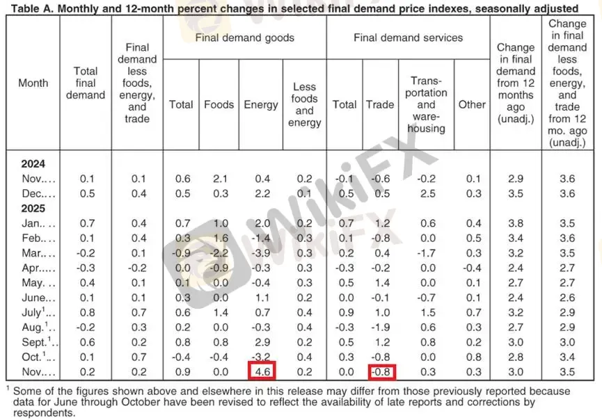 美國11月PPI環比增長0.2%,符合市場預期。進一步觀察結構,終端商品環比上漲0.9%,創下2024年以來環比增長新高,主要因能源價格上漲所致。所幸終端服務指數持平拉低整體PPI平均值。
