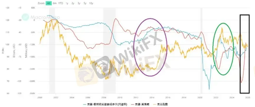 美國雙赤字問題是過去十年無法解決的議題,但在川普推動關稅與製造業回流,大幅改善財政赤字,2025年第四季同比已大幅減少1100億美元,赤字收窄16%。