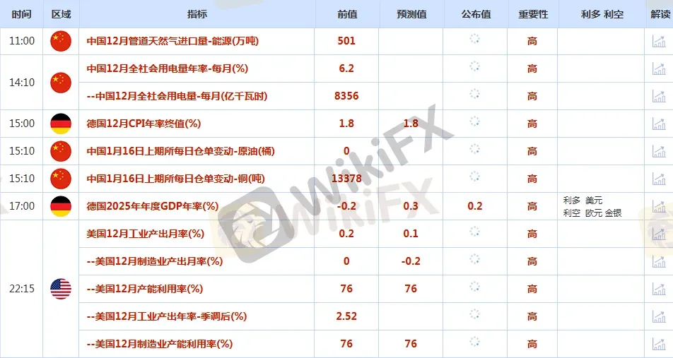 避險需求降溫:美國總統川普表示,伊朗鎮壓抗議活動中的行為似乎正在緩解,暗示其可能採取觀望態度,這削弱了黃金的避險吸引力。