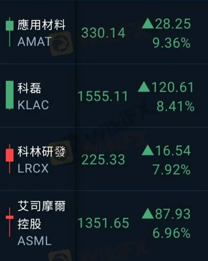 在TSMC資本支出520-560億美元,高於市場預期450億-500億美元,激勵半導體設備股大漲,應用材料上漲9.36%、科磊上漲8.41%、科林研發上漲7.92%、ASML上漲6.96%。