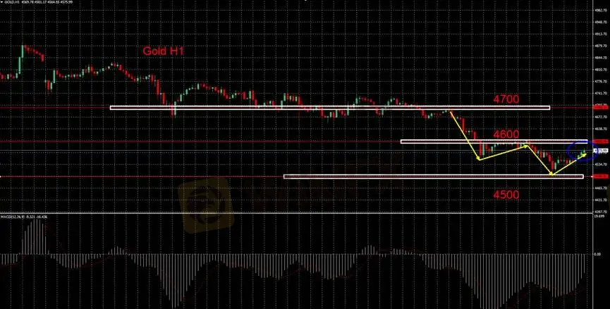 目前價格在4600上方出現反彈,但整體仍處於下降趨勢中,高點持續下移,且反彈力度偏弱,顯示空方仍掌握主導權,短線屬於跌深後的技術性修正。
